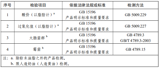 食用油脂制品抽檢項(xiàng)目: